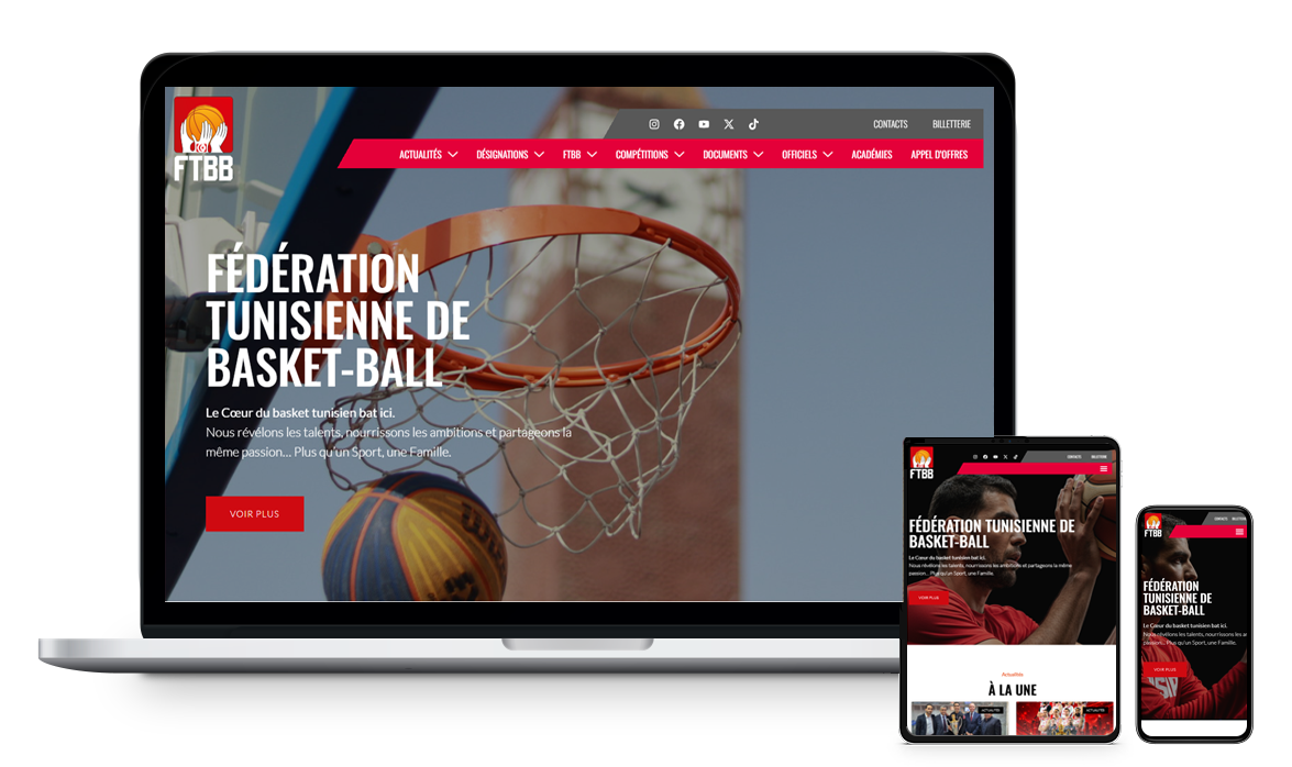 La Fédération Tunisienne de Basket Ball avait besoin de mettre aux goûts du jour son site web. Pour ce faire, elle a fait appel à notre agence web en Tunisie.